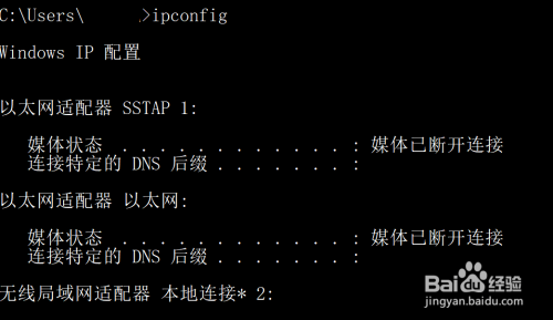 在弹出的界面中输入ipconfig,即可获取IP地址信息。