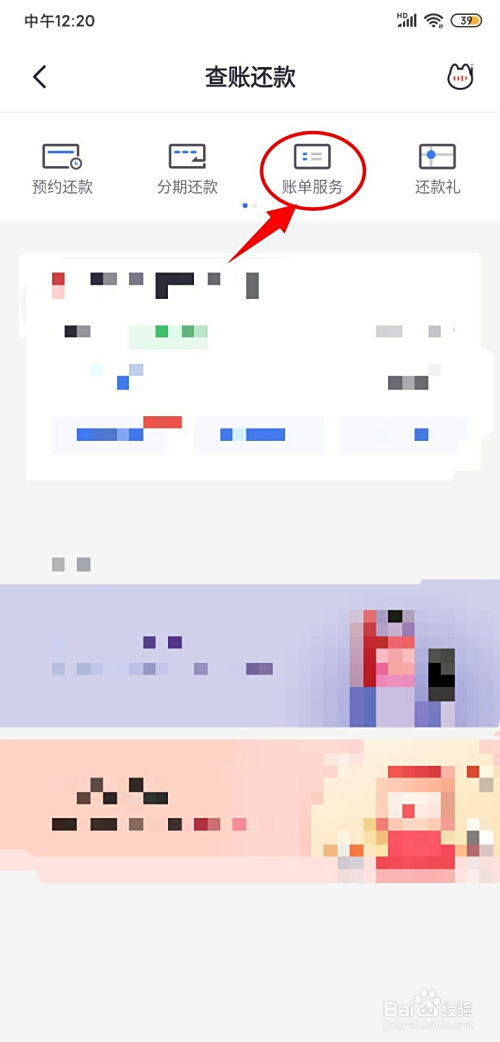 4.在弹出的页面中点击【账单办事】;
