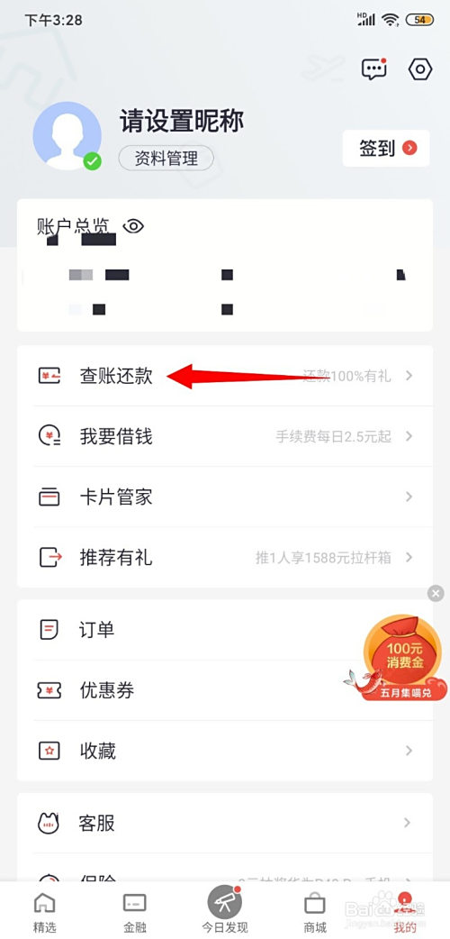 登录后,点击【查账还条目】;