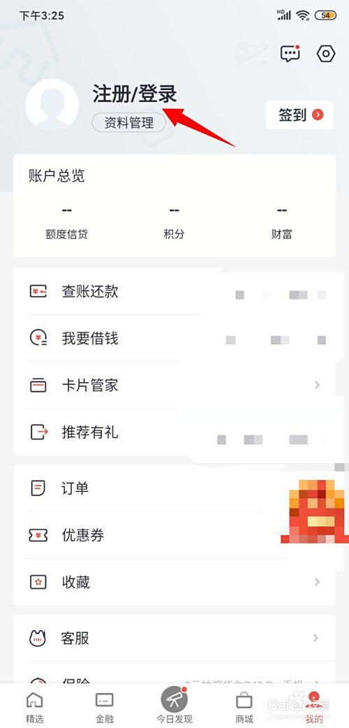 接着,点击顶部的【注册/登录】登录账户;