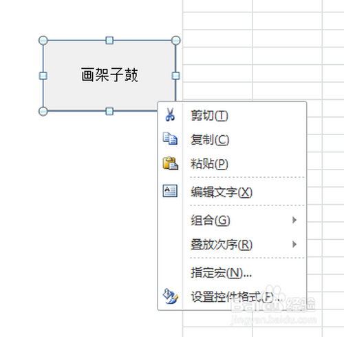 7.选中“画架子鼓”控件,然后点击鼠标右键,选择“指定宏”。