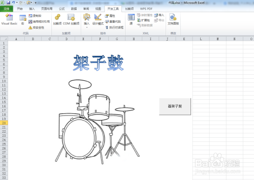 6.点击插入一个按钮控件,并定名为“画架子鼓”。