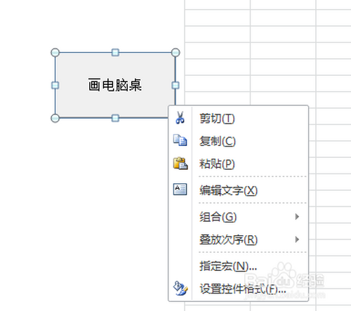 7.选中“画电脑桌”控件,然后点击鼠标右键,选择“指定宏”。