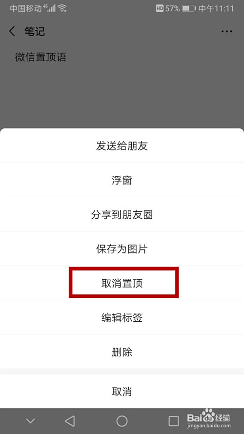 若是想要打消置顶也很简单,只需要点击一下置顶上的文字,跳转到笔记的输入页面,然后点击右上角的三个点...,选择【打消置顶】就行了。