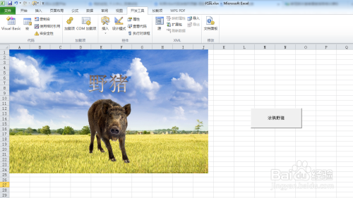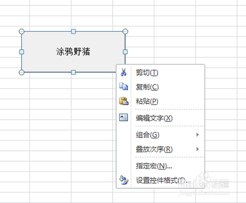 7.将按钮控件定名为“涂鸦野猪”,然后点击右键,选择“指定宏”选项。