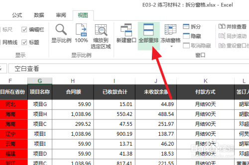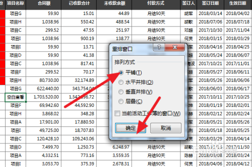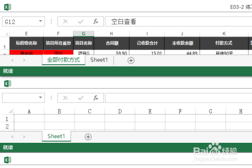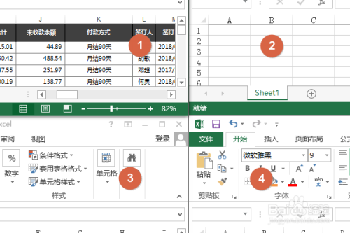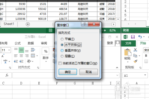 可以看到平铺事后它会在屏幕上显示所有的工作薄,4个表格占完整个屏幕。