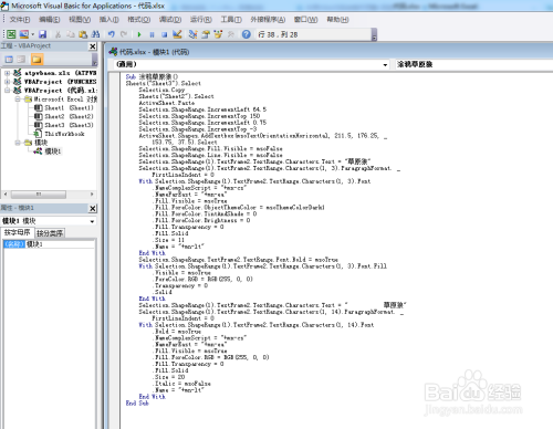 5.在VBA编纂界面,写入指定的VBA代码,然后点击封闭按钮。