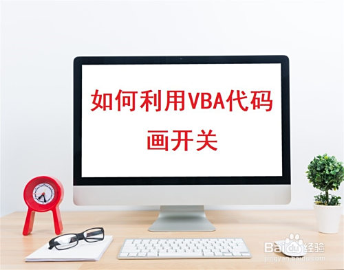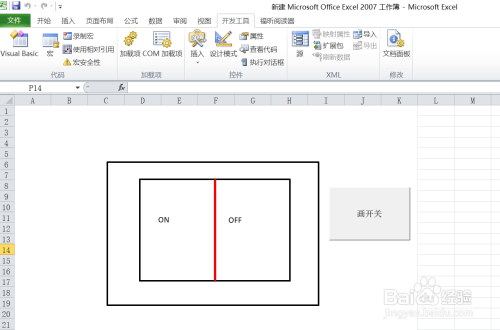 6.点击插入一个按钮控件,并定名为“画开关”。