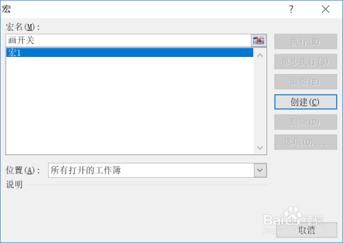 4.写明VBA代码名称,然后点击“建立”按钮。