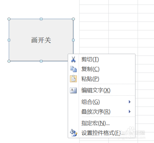 7.选中“画开关”控件,然后点击鼠标右键,选择“指定宏”。