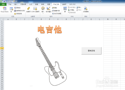 6.点击插入一个按钮控件,并定名为“画电吉他”。