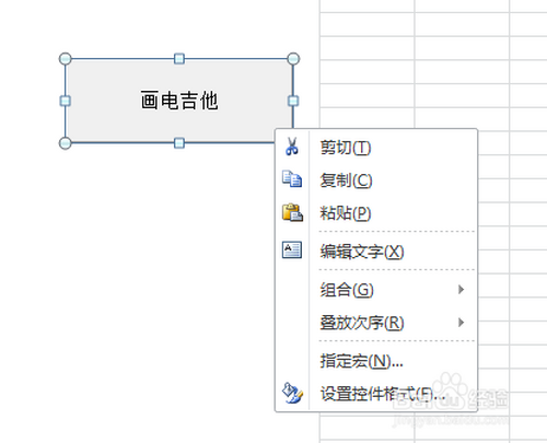 7.选中“画电吉他”控件,然后点击鼠标右键,选择“指定宏”。