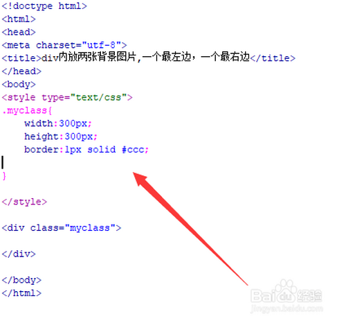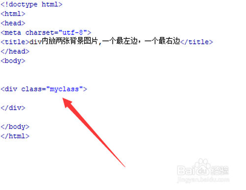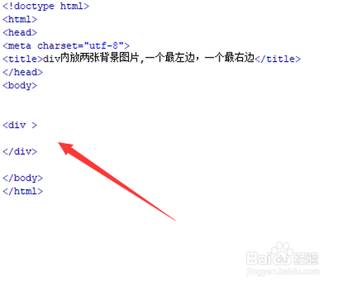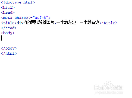 新建一个html文件,定名为test.html,用于讲解div内放两张布景图片,一个最左边,一个最右边。