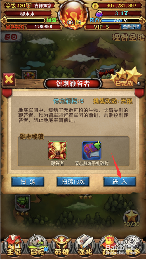 3.打开锐刺鞭挞者副本,点击进入按钮。