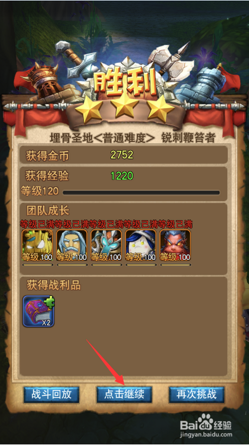 本关卡奖励1220点经验,点击下方点击继续按钮分开副本。