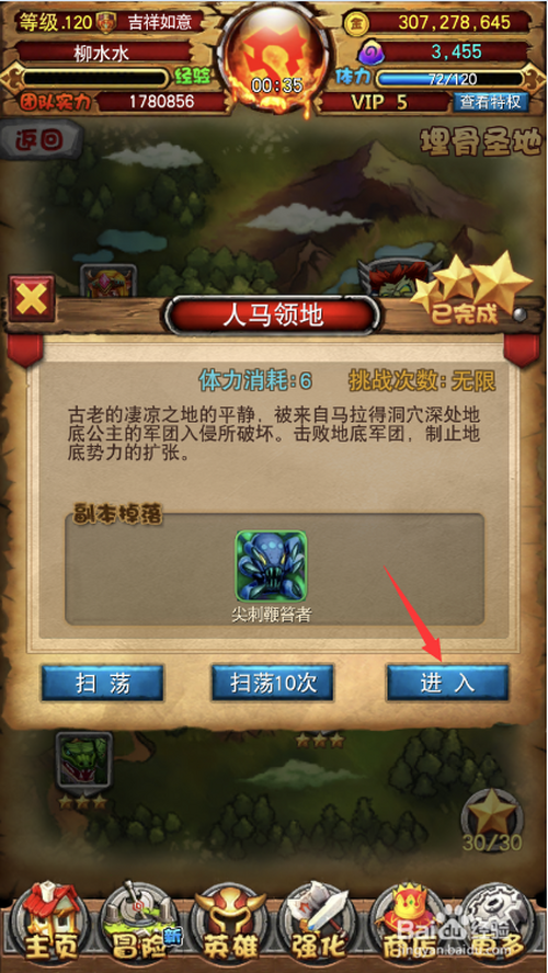 1.点击本家儿菜单冒险,再点击子菜单副本。