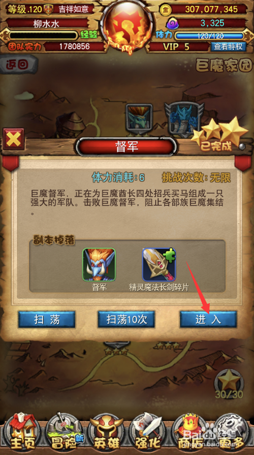 3.打开督军副本,点击进入按钮。
