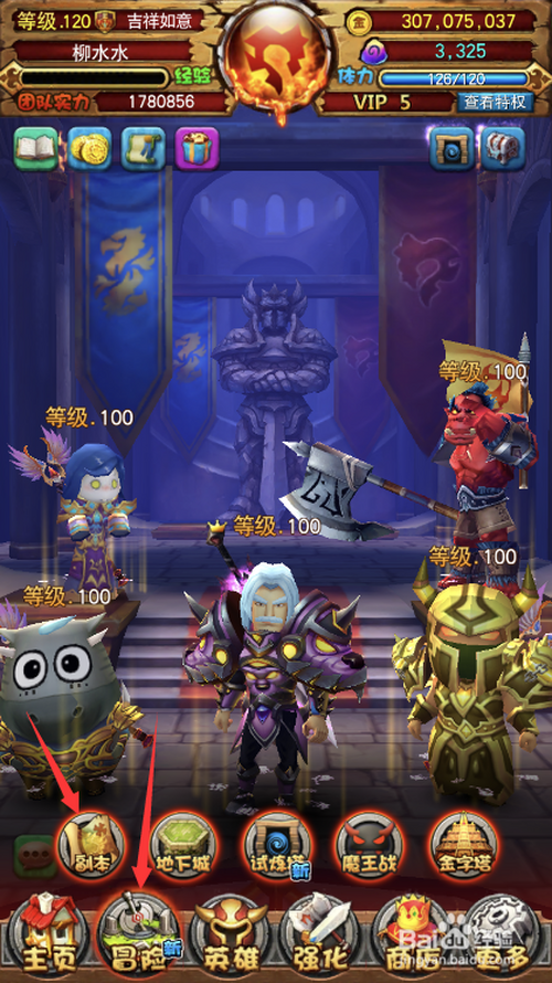 1.点击本家儿菜单冒险,再点击子菜单副本。