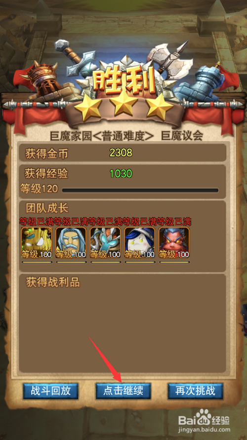 本关卡奖励1030点经验,点击下方点击继续按钮分开副本。