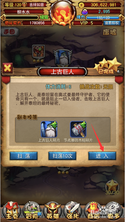 1.点击本家儿菜单冒险,再点击子菜单副本。
