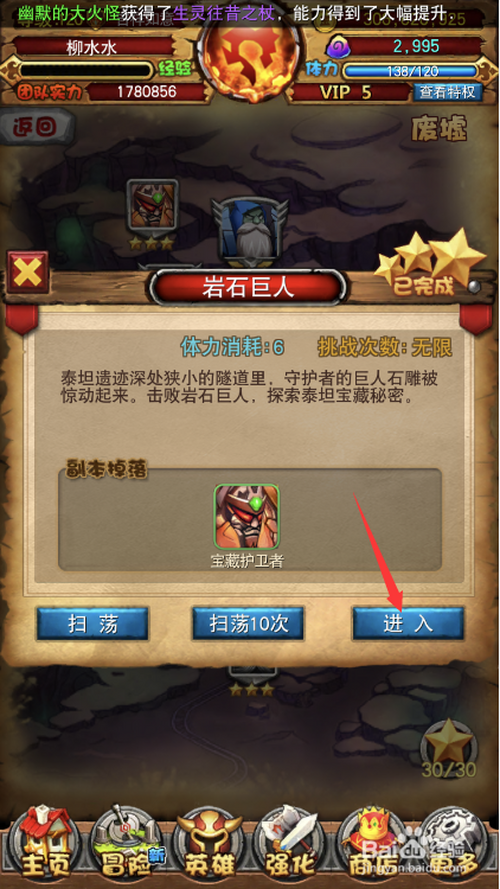 1.点击本家儿菜单冒险,再点击子菜单副本。