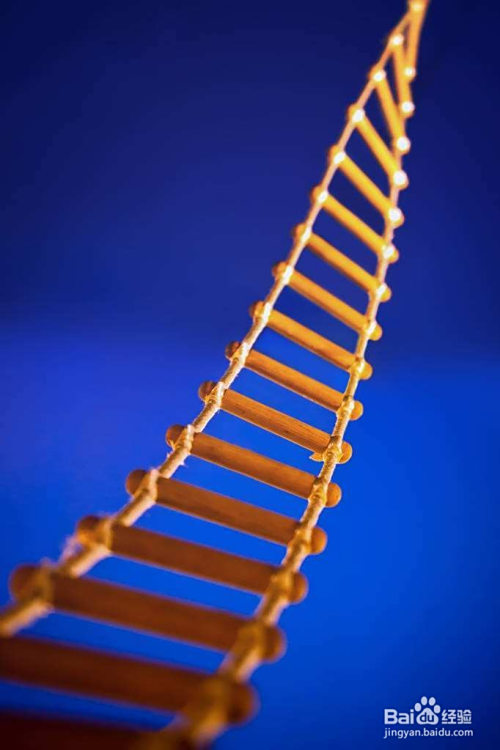 然后将另一段长木头合适距离也绑好所有的踏步的另一端,注重本身在绑的时辰多绕几圈。这样一个姑且的梯子也就做好了。