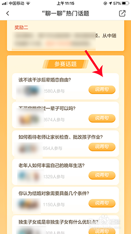 3.进入后选择标的目的上滑动,选择一个话题点击“说两句”。