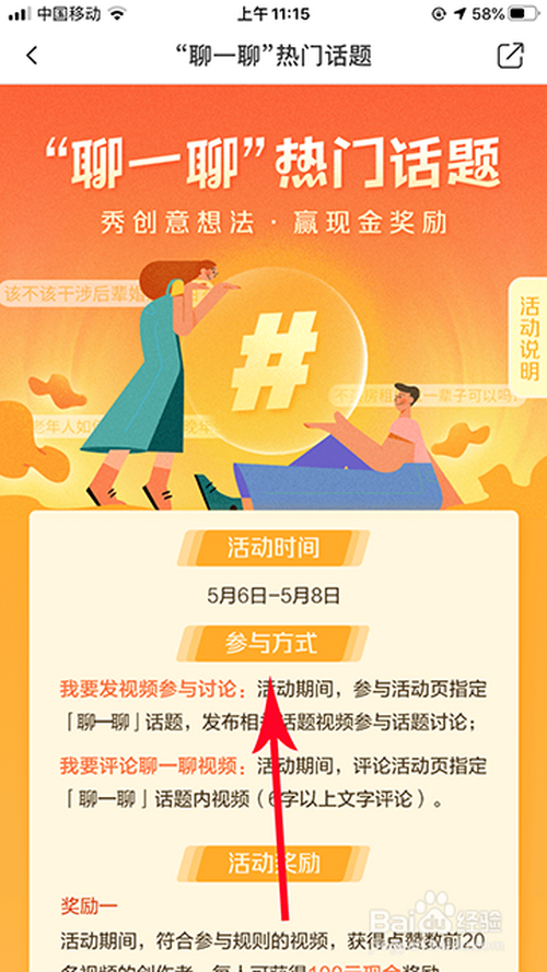 进入后选择标的目的上滑动,选择一个话题点击“说两句”。