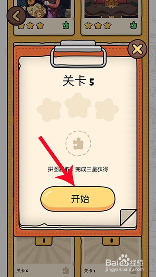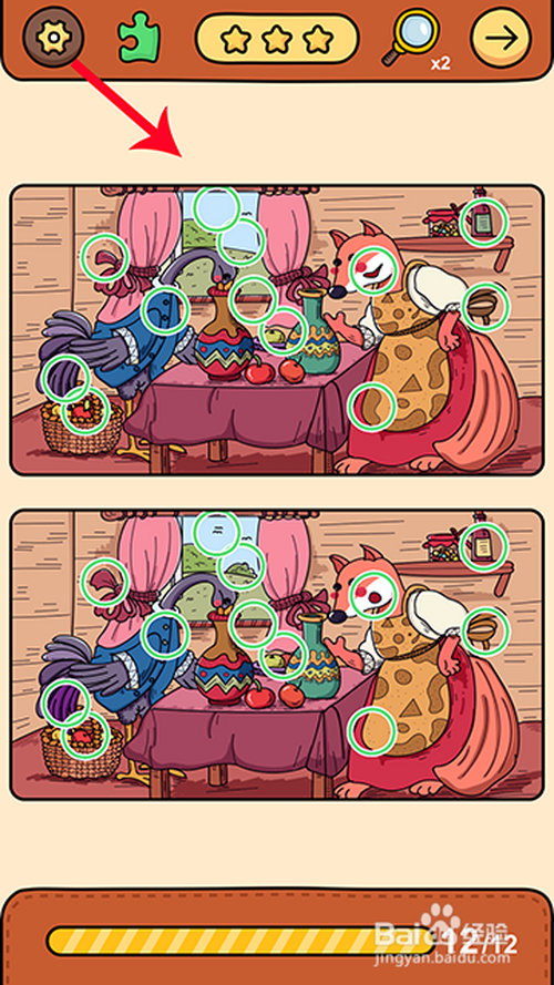打开后,选择“起头”,进入后小编已通关,圆圈圈住的就是12处分歧,完当作三星拼图已获得通关。