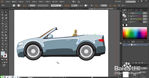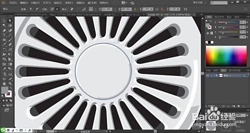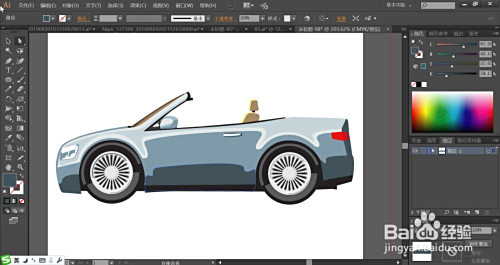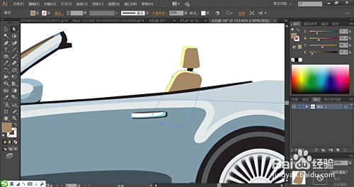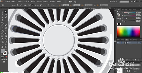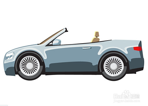 利用灰黑色与灰白色搭配填充钢圈的内凹处的路径,再用黑色填充钢圈的底层暗光区域,完当作复古敞篷车设计。