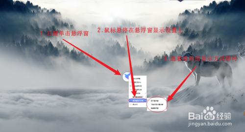 在弹出的菜单中将鼠标悬停在悬浮窗显示设置
