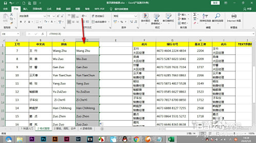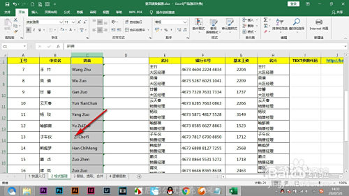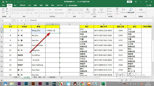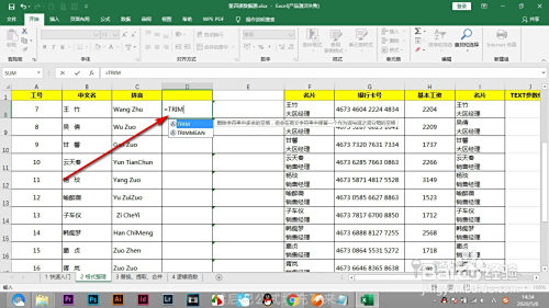 1.我们可以看到拼音名称前面有的有空格,若何利用函数删除。