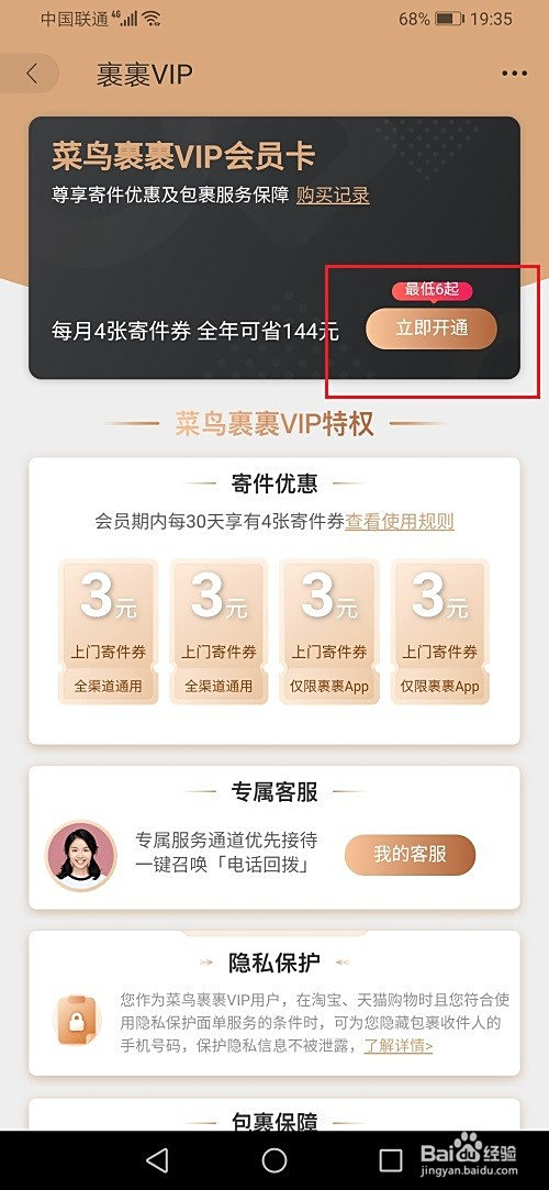第五步支付之后,就当作功开通了菜鸟裹裹会员了,如下图所示: