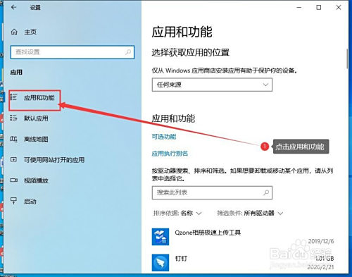 选择应用和功能并点击,如图所示。