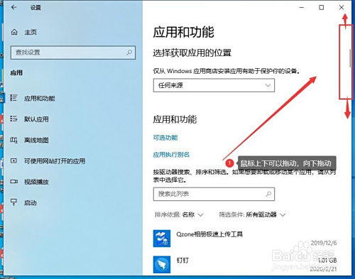 在右边的区域拖动滑动条,找到要卸载的软件,如图所示。