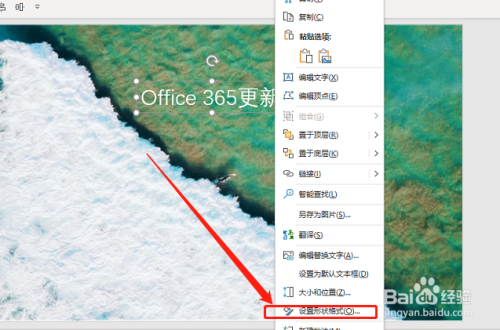 选中文本框,点击右键,选择“设置外形格局”。如图: