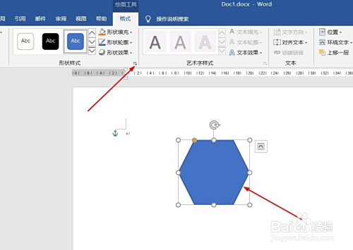 插入六边形当作功,选中插入对象,点击“格局”,并点击“形式样式”。