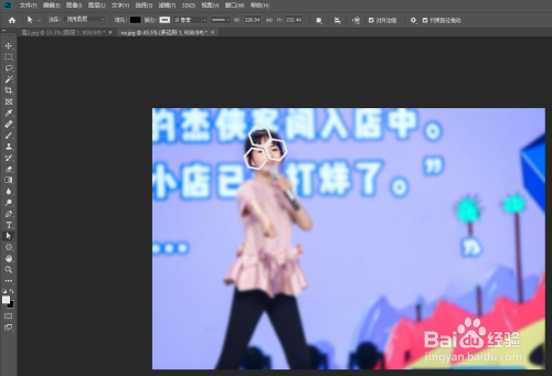 左侧东西栏中选择多边形东西,画一个多边形;鼠标右键单击多边形的图层,选择夹杂选项。