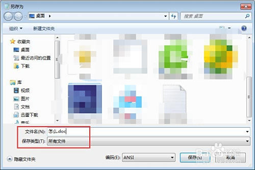 在跳出来的窗口中,把保留类型改当作‘所有文件’,然后在填写文件名后面加上.doc。