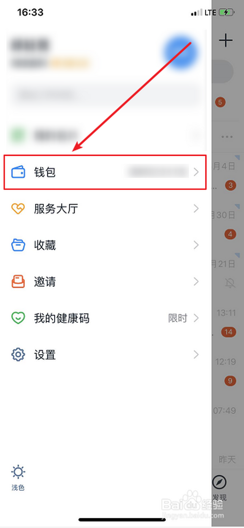 在弹出的菜单中,点击【钱包】