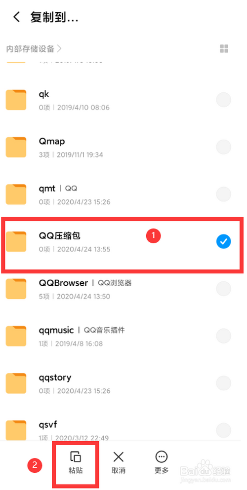 找到适才新建好的文件夹,点击左下角“粘贴”