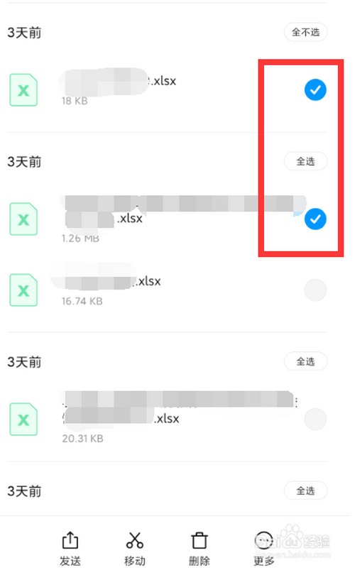 找到要压缩的文档长按选择,这里以QQ中的几个文档为例