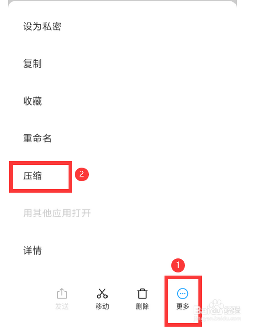 粘贴完当作今后长按新建好的压缩包选择今后点击右下角“更多”,接着在弹出的页面中点击“压缩”