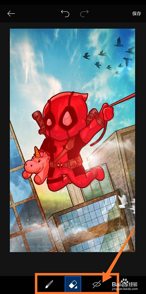 点击下一步后我们可以点击画笔和橡皮擦图标来实现修整完美抠图对象,好了后我们点击最右边图标埋没布景