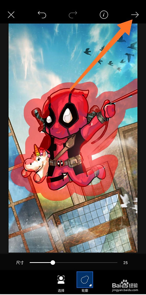 我们设置好尺寸后,用手指在抠图人物四周画一圈,画出人物大要轮廓,然后点击右上角下一步