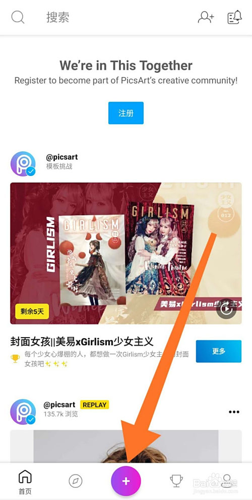 我们先从应用商铺下载PicsArt软件到手机,然后打开软件点击“+”导入图片