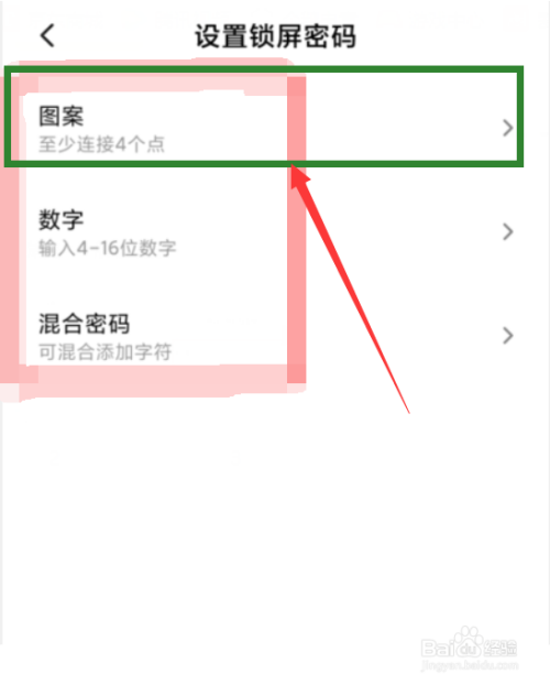 暗码有三种类型:图案、数字和夹杂暗码,这里选择的是图案