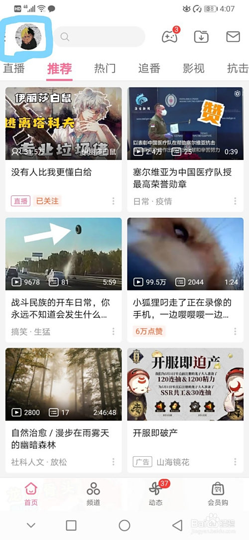 1.打开bilibili,点击头像