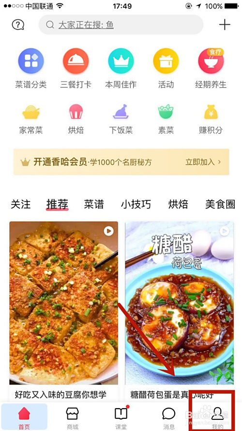 1.打开喷鼻哈菜谱,点击右下角的我的。