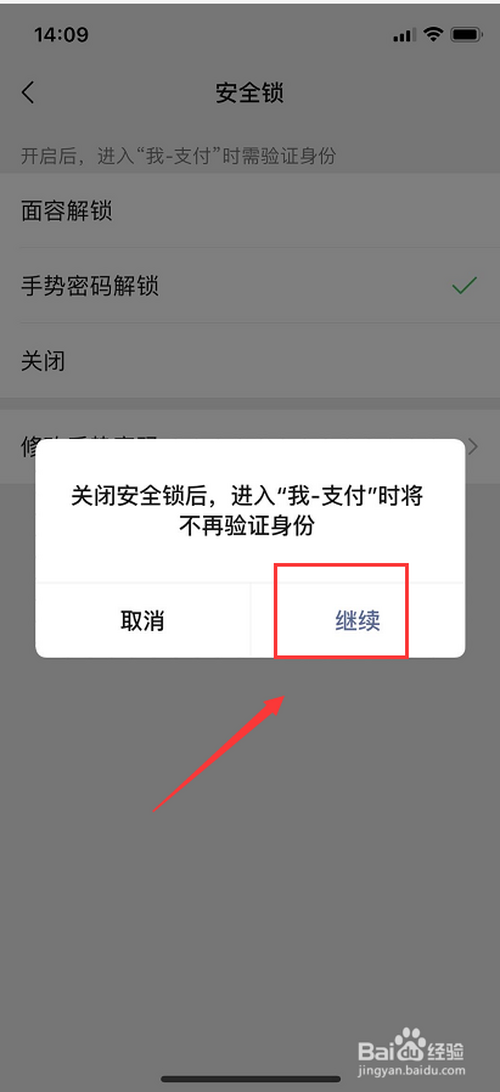 点击【封闭平安锁后,进入“我-支付’时将才再验证身份】下面的【继续】